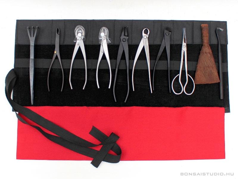 A bonsai alakítás és gondozás fontos eszközeiből készült válogatás összecsavarható és megköthető tokban, mely védi a szerszámokat is egyben. A szerszámok úgy lettek válogatva, ahogyan azt kisebb shohin és kifu méretű bonsai gyűjteménnyel rendelkező vásárlóink a leggyakrabban keresik.